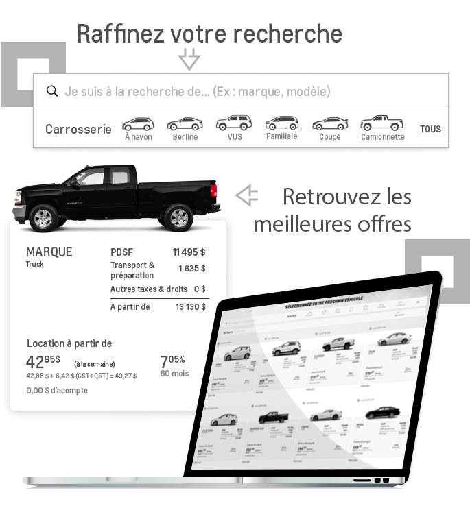Choisissez le plan de financement ou de location qui convient le mieux à votre situation dans le confort de votre maison. Nous avons une gamme d'options flexibles et adaptées à toutes les situations financières.